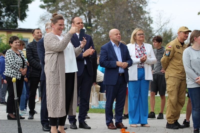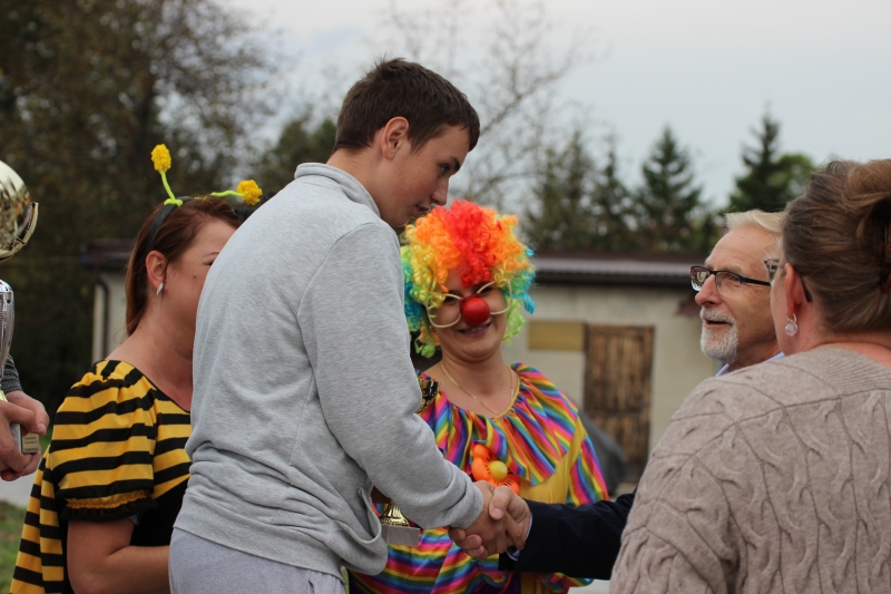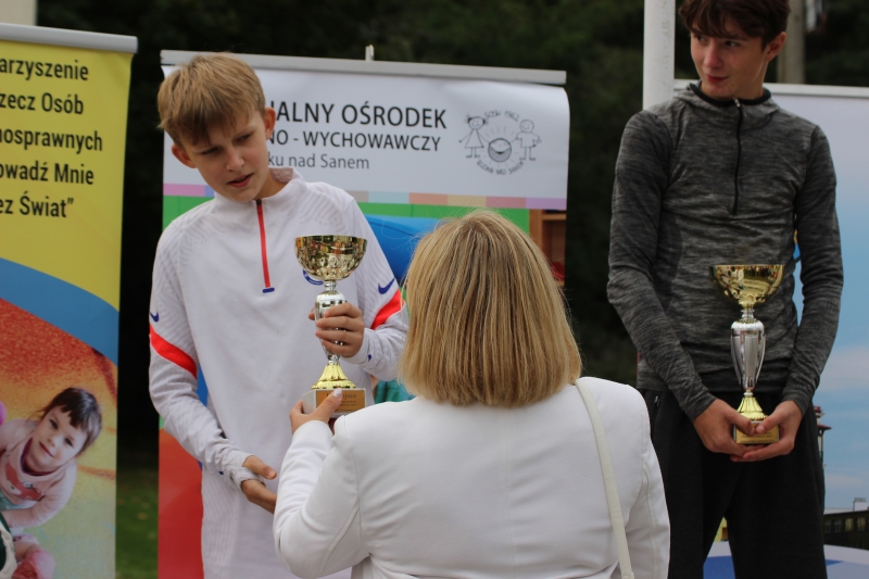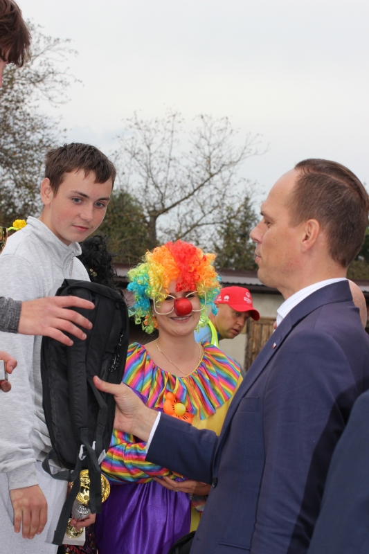 W dniu 5 października 2023 r. w ramach projektu „Na miejsca, uśmiech start!”, podopieczni SOSW, ich rodzice, a także chętni mieszkańcy powiatu niżańskiego, wzięli udział w integracyjnym wyścigu ulicami Rudnika nad Sanem. Warunkiem było pokonanie 2 km trasy w dowolnej formie np.: biegiem, marszobiegiem, rowerem, na wózku lub na hulajnodze. Celem biegu nie była rywalizacja, lecz integracja osób niepełnosprawnych ze społecznością lokalną. Projekt został zrealizowany przez Stowarzyszenie na Rzecz Osób Niepełnosprawnych „Poprowadź Mnie przez Świat”, przy wsparciu finansowym Powiatu Niżańskiego. W wyścigu uczestniczyło 140 osób. Każdy uczestnik biegu otrzymał pakiet żywnościowy ora  pamiątkowy plecak. Rodzice i nauczyciele SOSW przygotowali dla wszystkich uczestników słodki poczęstunek oraz biesiadowanie przy ognisku i muzyce. Funkcję koordynatora projektu pełniła Pani Aneta Jakubowska, a wspierali ją wszyscy nauczyciele i wychowawcy SOSW, przy szczególnym zaangażowaniu Pań: Dominiki Zdeb, Agnieszki Wołoszyn i Reginy Chudzik oraz Panów: Tomasza Zielińskiego, Piotra Trojanowskiego i Grzegorza Szewca. Bardzo serdecznie dziękujemy wszystkim, którzy włączyli się w to wspaniałe i wyjątkowe wydarzenie, w tym: Panu Staroście Robertowi Bednarzowi oraz Panom Komendantom Komendy Państwowej Powiatowej Policji w Nisku i Komendy Państwowej Powiatowej Straży Pożarnej w Nisku, a także niecodziennym gościom w osobach Pana Wiceministra Rafała Webera i Pana Przewodniczącego Rady Powiatu Niżańskiego Sylwestra Daśko.