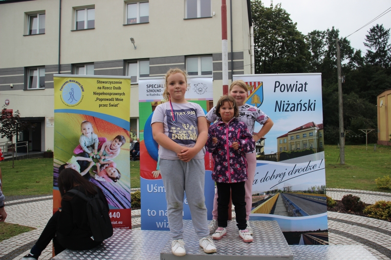 W dniu 5 października 2023 r. w ramach projektu „Na miejsca, uśmiech start!”, podopieczni SOSW, ich rodzice, a także chętni mieszkańcy powiatu niżańskiego, wzięli udział w integracyjnym wyścigu ulicami Rudnika nad Sanem. Warunkiem było pokonanie 2 km trasy w dowolnej formie np.: biegiem, marszobiegiem, rowerem, na wózku lub na hulajnodze. Celem biegu nie była rywalizacja, lecz integracja osób niepełnosprawnych ze społecznością lokalną. Projekt został zrealizowany przez Stowarzyszenie na Rzecz Osób Niepełnosprawnych „Poprowadź Mnie przez Świat”, przy wsparciu finansowym Powiatu Niżańskiego. W wyścigu uczestniczyło 140 osób. Każdy uczestnik biegu otrzymał pakiet żywnościowy ora pamiątkowy plecak. Rodzice i nauczyciele SOSW przygotowali dla wszystkich uczestników słodki poczęstunek oraz biesiadowanie przy ognisku i muzyce. Funkcję koordynatora projektu pełniła Pani Aneta Jakubowska, a wspierali ją wszyscy nauczyciele i wychowawcy SOSW, przy szczególnym zaangażowaniu Pań: Dominiki Zdeb, Agnieszki Wołoszyn i Reginy Chudzik oraz Panów: Tomasza Zielińskiego, Piotra Trojanowskiego i Grzegorza Szewca. Bardzo serdecznie dziękujemy wszystkim, którzy włączyli się w to wspaniałe i wyjątkowe wydarzenie, w tym: Panu Staroście Robertowi Bednarzowi oraz Panom Komendantom Komendy Państwowej Powiatowej Policji w Nisku i Komendy Państwowej Powiatowej Straży Pożarnej w Nisku, a także niecodziennym gościom w osobach Pana Wiceministra Rafała Webera i Pana Przewodniczącego Rady Powiatu Niżańskiego Sylwestra Daśko.