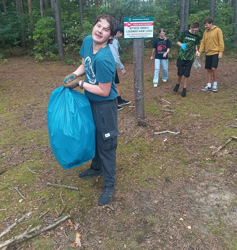 W piątek 19 września 2025 r. nasz Ośrodek po raz kolejny włączył się w akcję „Sprzątanie Świata”. Tegoroczne wydarzenie odbywało się pod hasłem: „W naturę z kulturą”. O godzinie 9:40 nasi podopieczni spotkali się przed budynkiem placówki, zostali zaopatrzeni w worki i rękawice, a następnie wyruszyli w teren by posprzątać pobliską okolicę, w szczególności lasek za blokami oraz obiektem MOSiR. Zebrane odpady odebrało od nas Miasto i Gmina Rudnik nad Sanem. Było to jedno z działań zawartych w programie edukacji ekologicznej „Ekologia. To lubię!”. Bardzo się cieszymy z tak dużej liczby uczestników tegorocznego wydarzenia i dziękujemy Wszystkim za promowanie postaw proekologicznych.