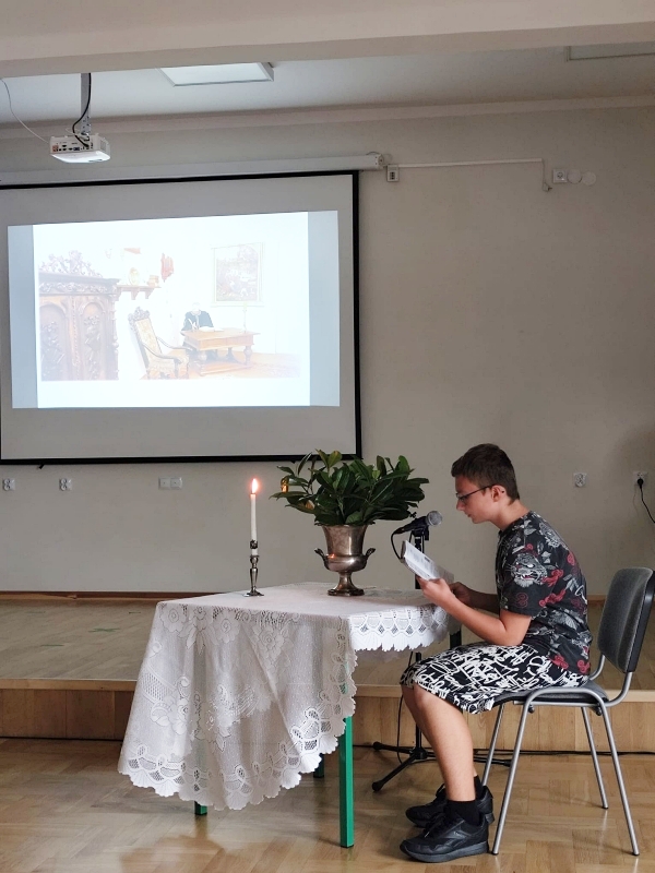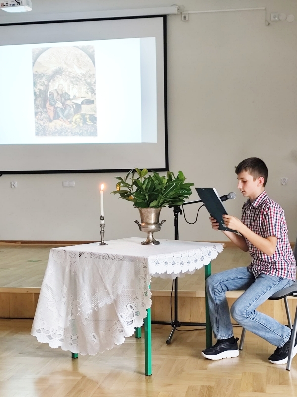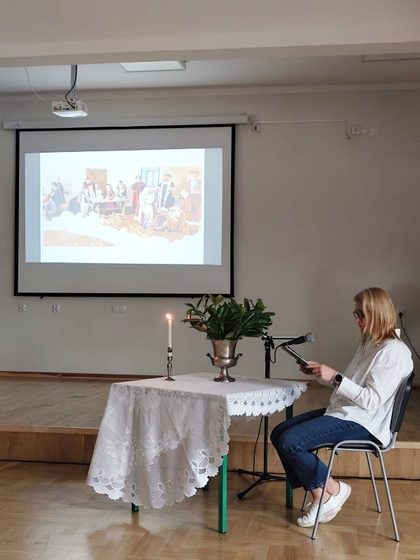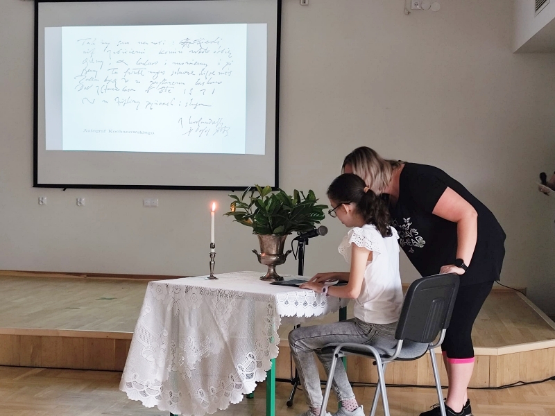Pieśni, treny i fraszki Jana Kochanowskiego rozbrzmiewały również w naszej szkole. Spotkanie poprowadziła Pani Anna Zając, przybliżając wszystkim postać wielkiego poety. Narodowe Czytanie rozpoczęła Pani Dyrektor, odczytując Tren VIII. Uczniowie zaprezentowali fraszki, a nauczyciele – pieśni. Wszyscy uczestnicy otrzymali pamiątkowe dyplomy.