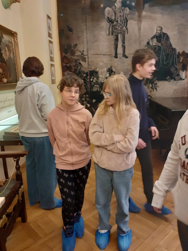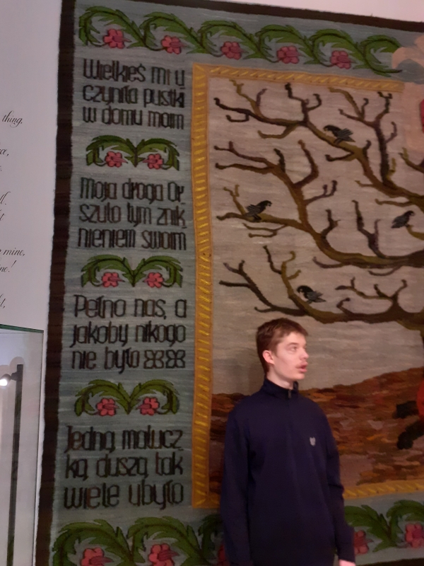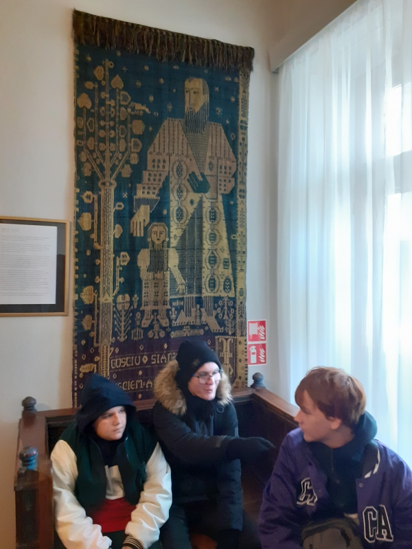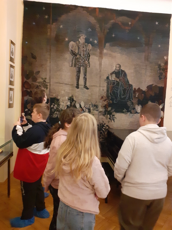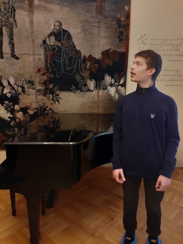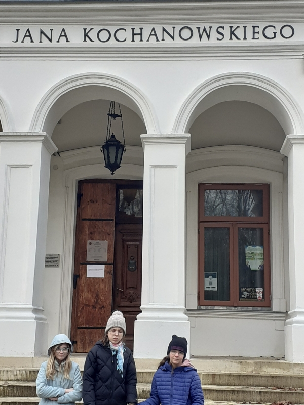 Jan Kochanowski (1530-1584). Celem naszej wycieczki było zwiedzenie Muzeum Jana Kochanowskiego, które znajduje się przepięknym XIX - wiecznym dworku Jabłonowskich. Dwór jest rekonstrukcją siedziby rodu Kochanowskich, która spłonęła w 1720 roku, zachowały się jedynie zabytkowe drzwi z widocznym herbem rodu. Przed budynkiem obejrzeliśmy wykonaną z brązu postać czarnoleskiego poety, który trzyma złotą różę ,,symbol poezji wiecznie żywej”. Pani przewodnik w bardzo ciekawy sposób przedstawiła nam informacje dotyczące życia i twórczości poety oraz dzieje jego rodziny. Opowieść połączona była z oglądaniem eksponatów zgromadzonych w sześciu salach. Na uwagę zasługuje bogaty zbiór starodruków, rękopisów oraz rzeźb i obrazów z XIX i XX wieku oraz gobeliny. Dopełnienie kolekcji stanowią meble i przedmioty codziennego użytku z epoki renesansu. Po zwiedzeniu muzeum uczniowie mieli okazję wyciszyć się i posłuchać nastrojowej muzyki w neogotyckiej Kaplicy Zygmuntowskiej. Następnie udaliśmy się na krótki spacer po malowniczym parku. Nie udało nam się zobaczyć słynnej lipy opiewanej we fraszce, która nie dotrwała do naszych czasów. Na jej miejscu znajduje się obelisk upamiętniający Piotra Kochanowskiego, bratanka poety oraz kamienny sarkofag z wykutym imieniem ukochanej córeczki – Urszulki. Na koniec zakupiliśmy pamiątki w miejscowym sklepiku. W drodze powrotnej wstąpiliśmy do McDonalda na zasłużony posiłek. Wycieczka była bardzo udana i pełna ciekawych wrażeń, wzbudziła dużo pozytywnych emocji,