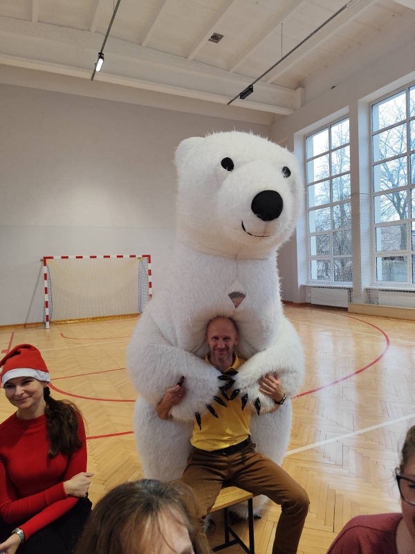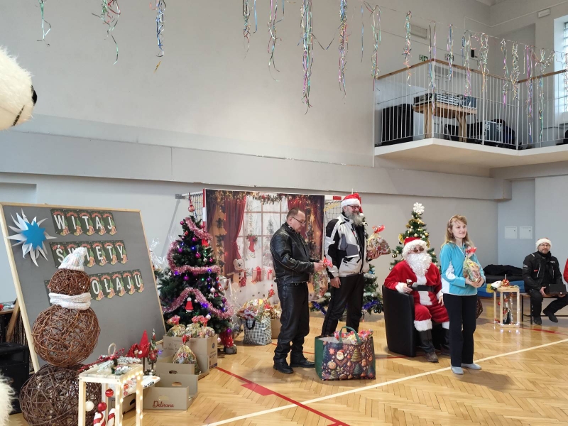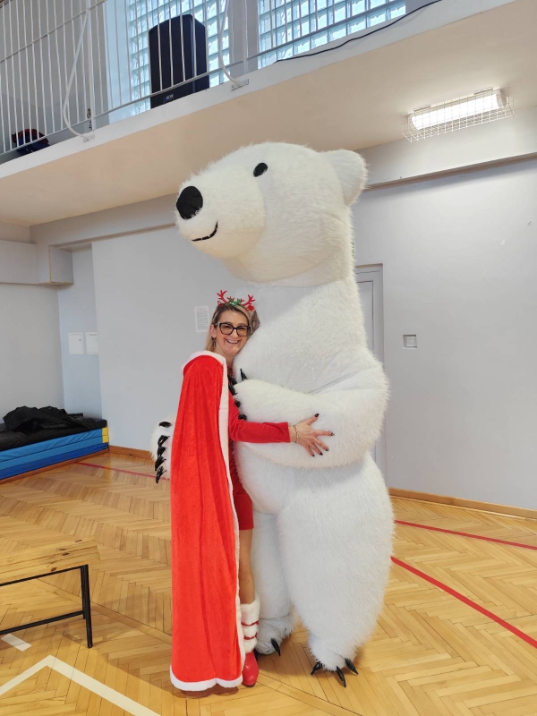 I stało się !!!! Po długich i wyczerpujących przygotowaniach nadszedł ten cudowny czas – 3.12.2025r. naszą szkołę odwiedził Święty Mikołaj. Ale jaką miał ze sobą obstawę!!!! Oprócz pomocników, którzy przyjechali z Mikołajem motocyklami, jako pasażer przyjechał również MIŚ POLARNY, którego spotkali w drodze jadąc do nas w odwiedziny. Nasi uczniowie przywitali przybyłych gości, uśmiechem , brawami i głośnymi okrzykami zachwytu. Mikołaj wręczył wszystkim przybyłym na spotkanie prezenty, łącznie z nauczycielami i pracownikami naszej szkoły. Nikt nie wyszedł z sali bez prezentu od Świętego. Na koniec nasi uczniowie wręczyli prezenty przybyłym gościom, dziękując za wspaniale spędzony czas. Za oprawę muzyczną odpowiedzialny był pan Piotr Trojanowski, za dekorację i zorganizowanie całej imprezy odpowiedzialna była pani Magdalena Zięba. Dziękujemy przybyłym gościom : Mikołaj - p. Jakub Skotnicki; pomocnicy Mikołaja : p. Rafał Pająk, p. Tomasz Rowicki, p. J. Bazan i p. Mariusz Bąk oraz Miś Polarny – p. Dorota Łebko. SERDECZNIE DZIĘKUJEMY.
