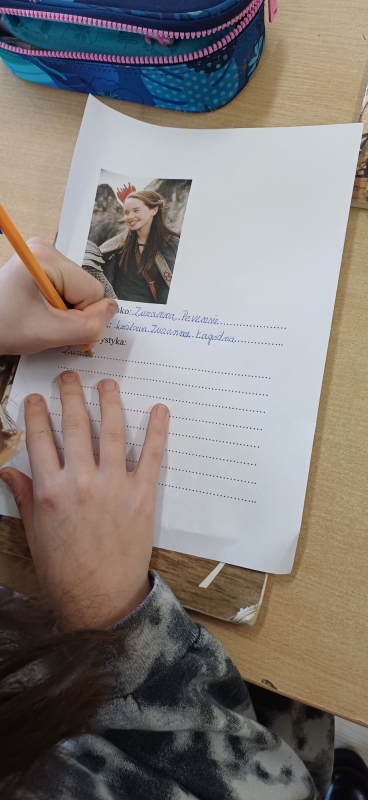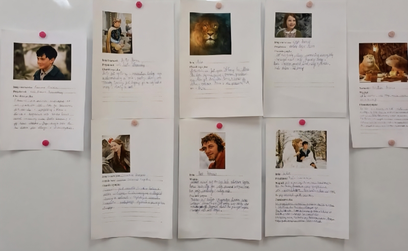 Po seansie uczniowie wykonali wizytówki wybranych postaci – pojawili się m.in. Piotr, Zuzanna, Edmund i Łucja, a także odważny Lew Aslan. Nie zabrakło również czarnego charakteru, którym była Biała Czarownica.
